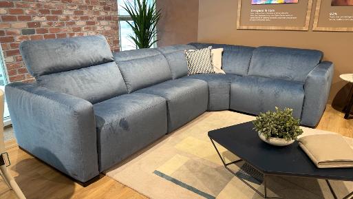 Natuzzi Editions Houston C280 lovely soft fabric corner sofa with power recliner on one side with power headrest bargain display model for £3999, measures 220 x 296cm