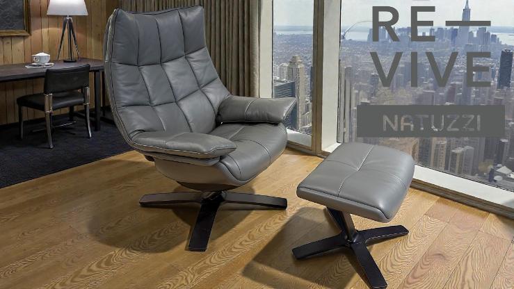 Natuzzi describes the powered recliner system with adjustable headrest and footrest.