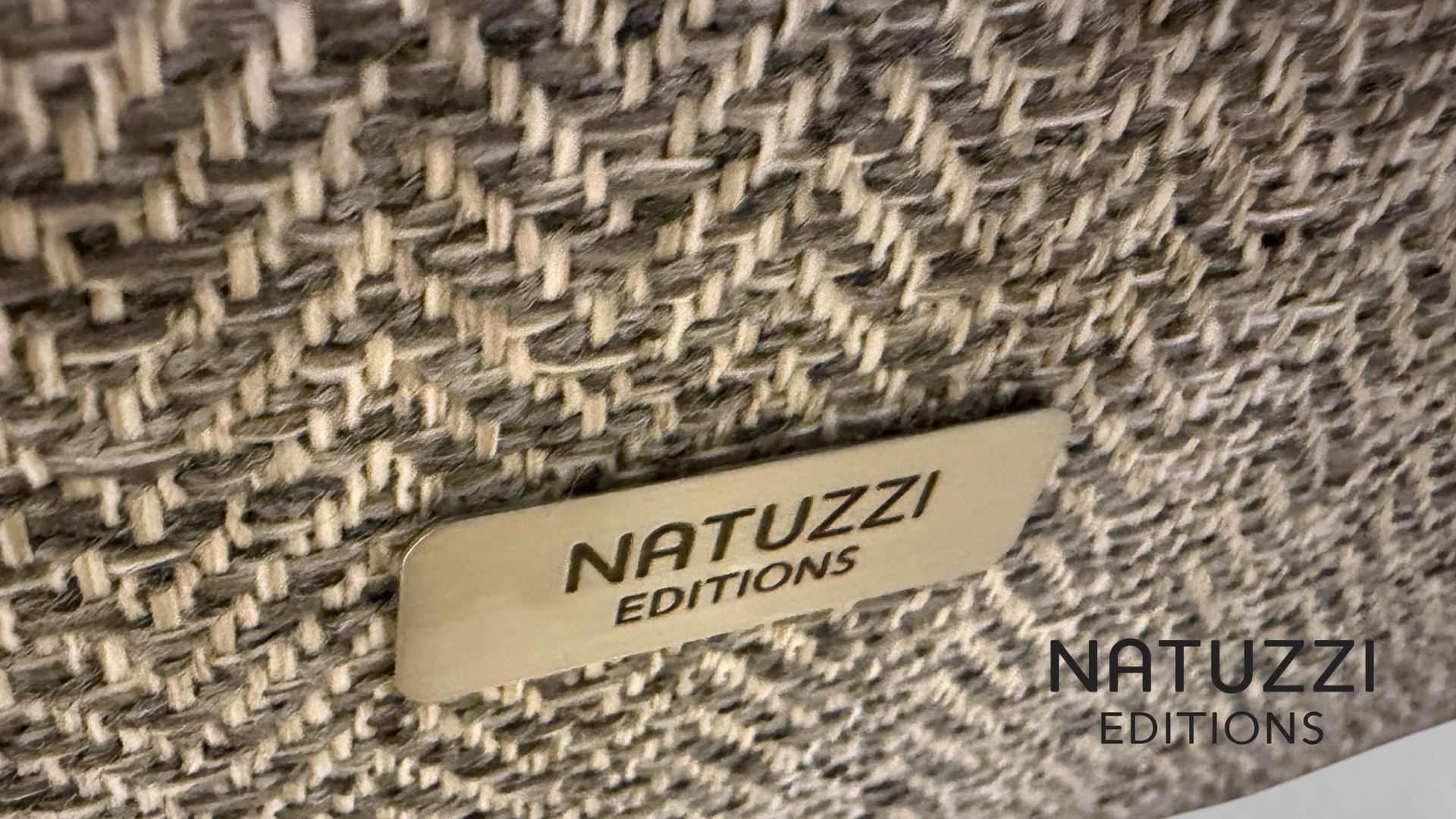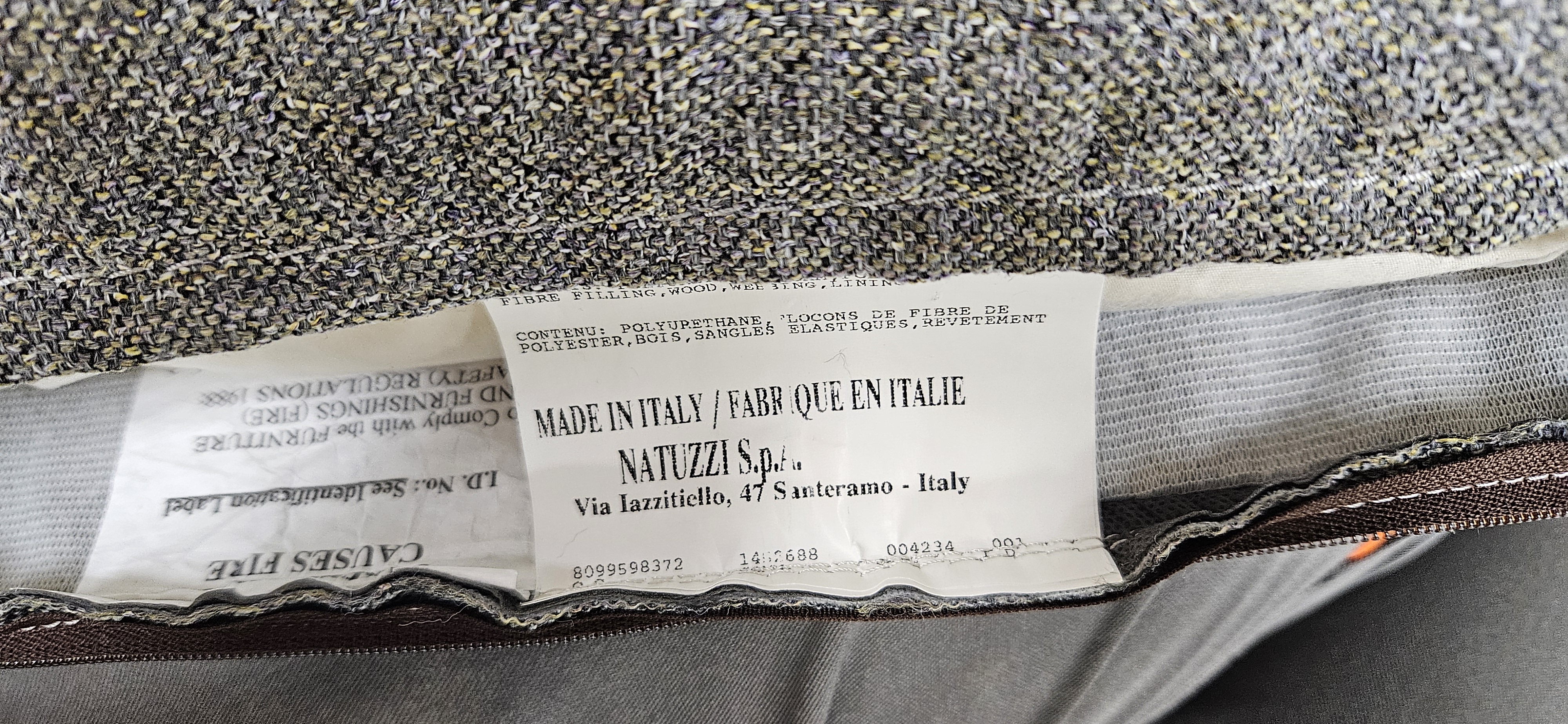 Natuzzi Editions Eleganza three seater sofa covered in wonderful grey contemporary woven fabric. Version 009 three seater static sofa.
