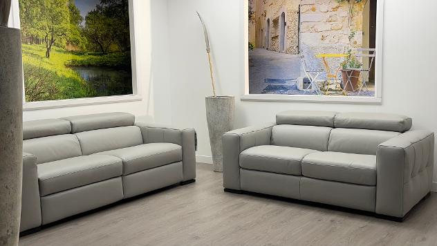 Natuzzi Editions Sollievo Light Grey Three And Two Seater Sofas In Premium Le Mans Leather. £2999