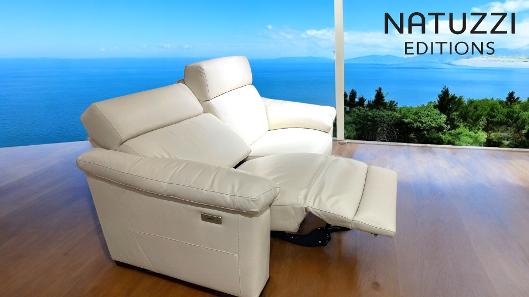 Natuzzi describes the powered recliner system with adjustable headrest and footrest.