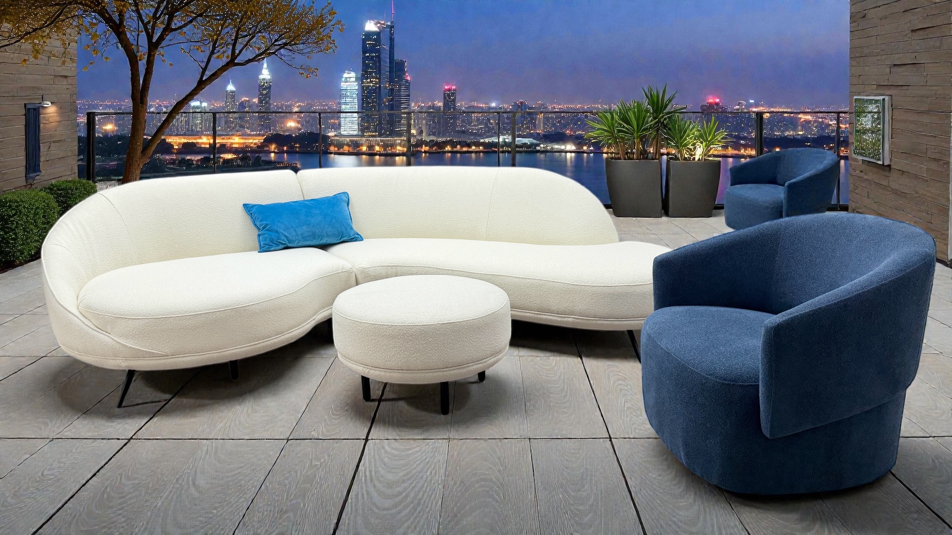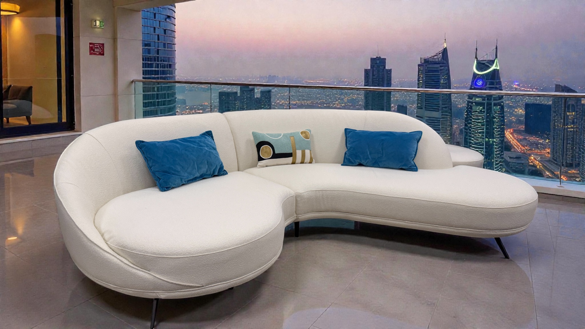 Stunning addition to Sofamax collection Venus Serenity beautiful soft white fabric curved corner with off the floor feet, absolute bargain @1299 . Pocket sprung seats combined with style comfort excellent choice of furniture. Available brand new delivered anywhere in the country within 2 weeks, small charge for delivery depending where you are based, give us a call on 01254 790795 or whatsapp 07486517997 blue and green contrast swivel chairs available @499 each footstool @299 or give us a call for a deal