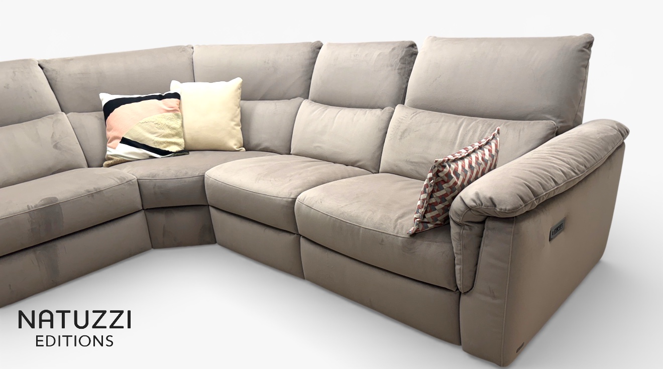 Natuzzi Editions c142 Versatile Corner With Power Recliner In Beige Sfinge Cleanable Fabric