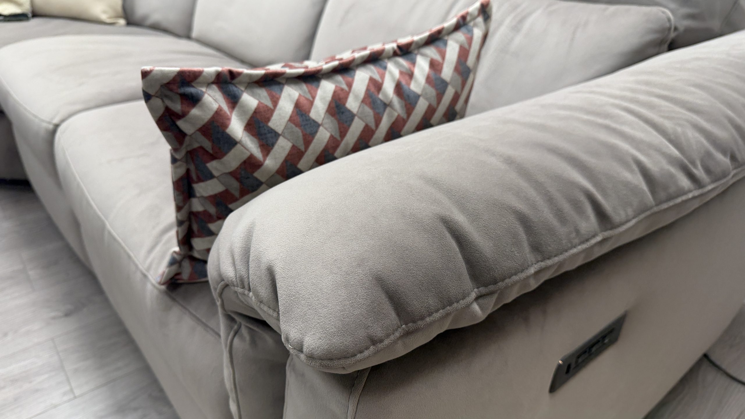 Taupe grey velvet Brezza fabric. £1799 Version 239 Macao C255