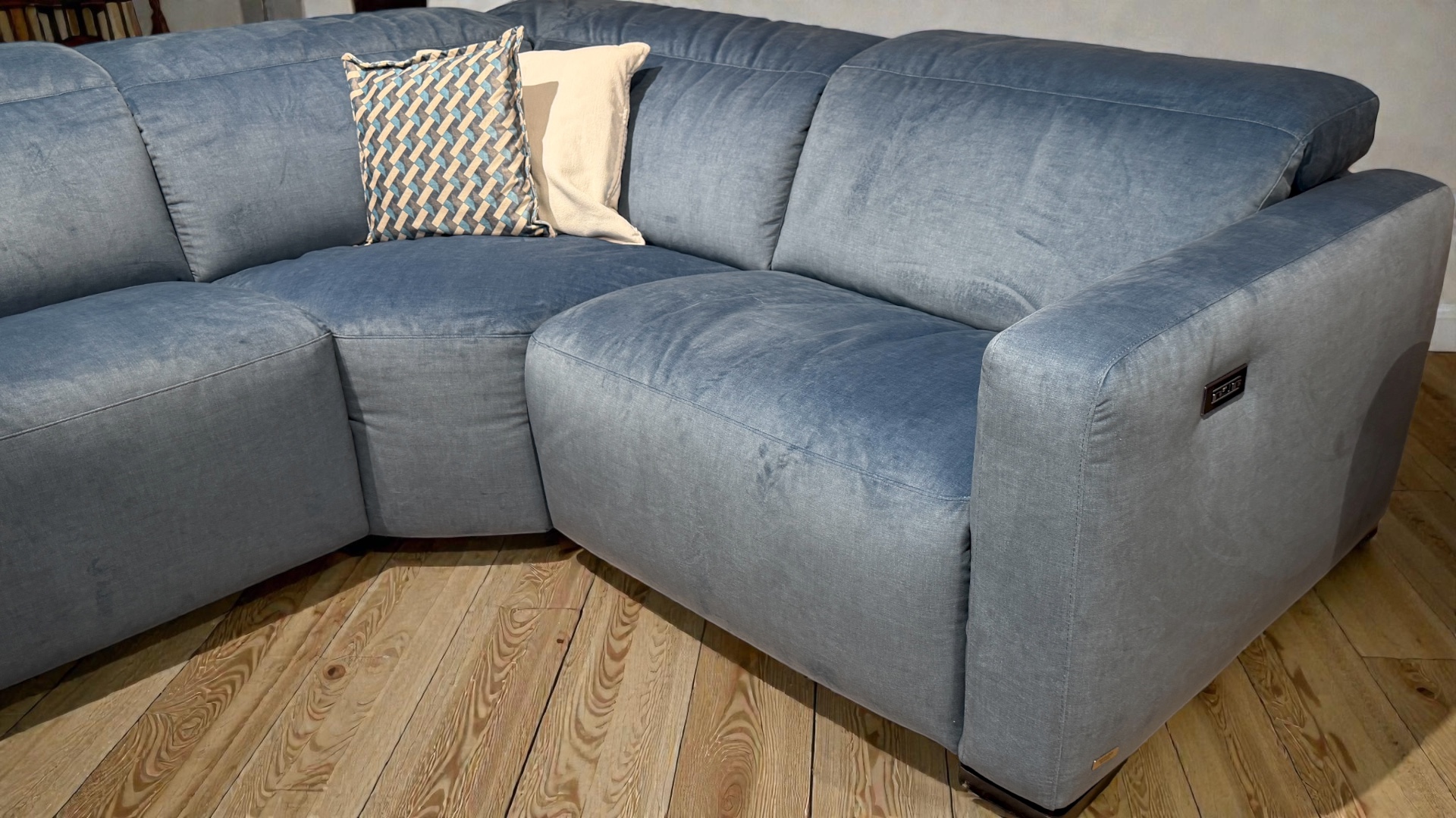 Natuzzi Greg arm to arm corner sofa with a power recliner on one side bargain to clear £2999