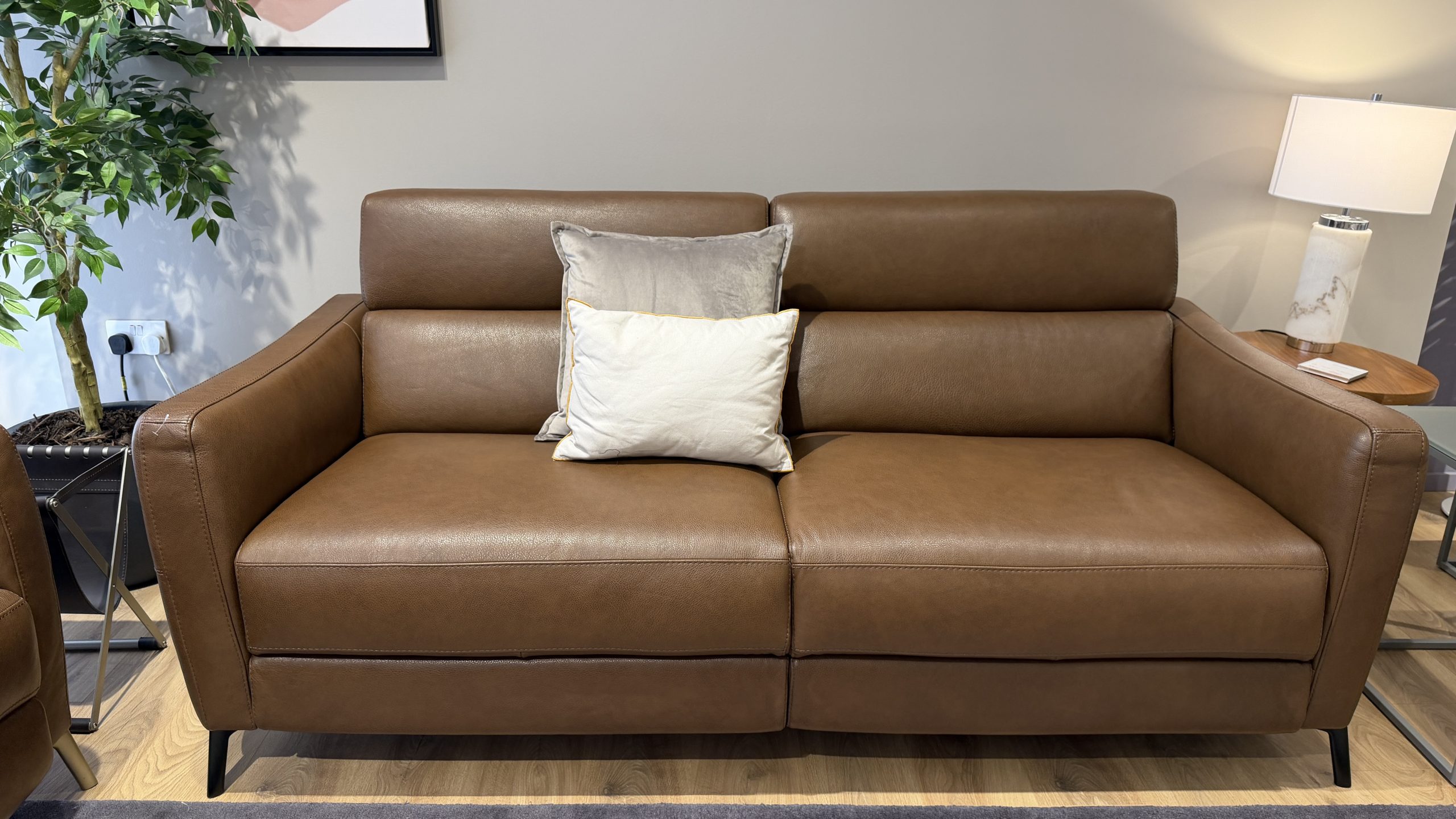 Natuzzi Greg C200 power reclining 3 & 3 seater in lovely soft brown leather up for grabs for £4999, each 3 seater is 200cm wide x 89cm deep, available for immediate delivery call 07486517997 or 01254 790795