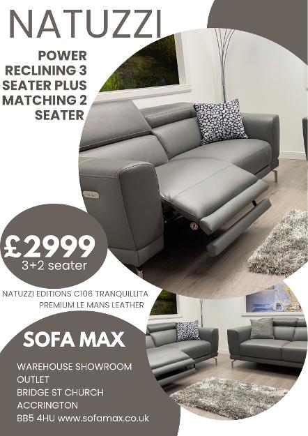 2023 sees some of the lowest price Natuzzi clearance offers ever on several Natuzzi Editions sofa models across the 2023 new collection designs. Shown here is the Natuzzi C106 Tranquilitta power reclining three seater sofa along with a fixed two seater sofa both with ratchet pull up headrests for low back designer styling or high back luxury comfort. Covered in 15D1 genuine Italian lovely premium mid grey semi aniline cowhide leather making this Italian designed Natuzzi sofa ooze style and quality. This very limited offer is we think the cheapest deal on a recliner leather Natuzzi sofa new in the world.